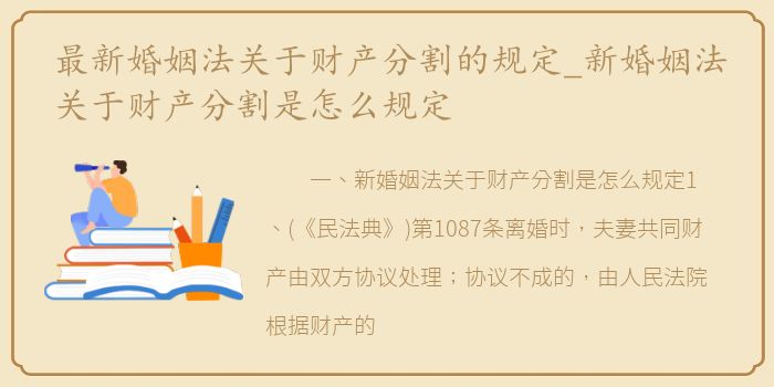 一、新婚姻法关于财产分割是怎么规定