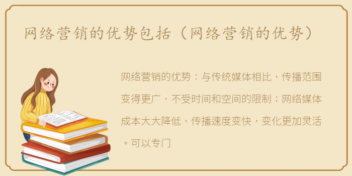 网络营销的优势:与传统媒体相比,传播范围变得更广,不受时间和空间的限制;网络媒体成本大大降低,传播速度变快,变化更加灵活。可以专门针对特定人群投放;受众变大了,也引人关注。