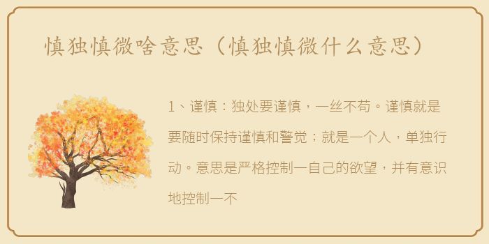 谨慎就是要随时保持谨慎和警觉;就是一个人,单独行动。意思是严格控制一自己的欲望,并有意识地控制一不受他人监督的自我欲望。