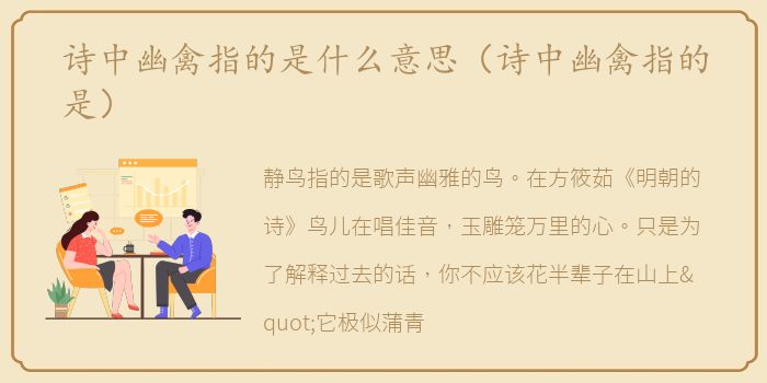静鸟指的是歌声幽雅的鸟。在方筱茹《明朝的诗》鸟儿在唱佳音,玉雕笼万里的心。只是为了解释过去的话,你不应该花半辈子在山上"它极似蒲青,幽鸟不空。"来自唐家道《光州王建使君水亭作》。所有的鸟都是指鹦鹉的声音。