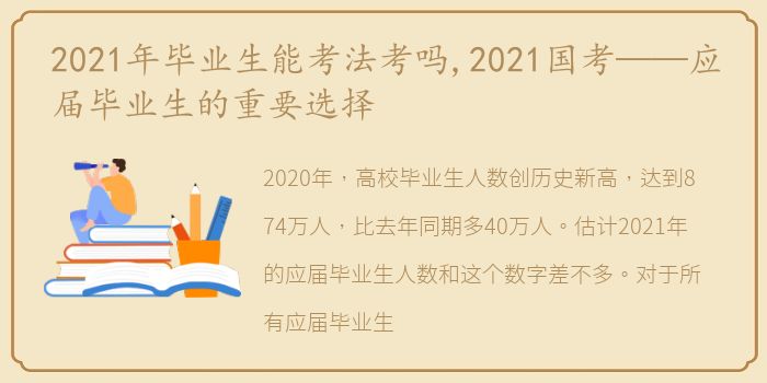 2020年,高校毕业生人数创历史新高,达到874万人,比去年同期多40万人。估计2021年的应届毕业生人数和这个数字差不多。对于所有应届毕业生来说,最大的问题就是就业。受疫情影响,发布招聘计划的公司减少,导致应届毕业生难以找到工作。所以很多小伙伴都把目光投向了考公务员。