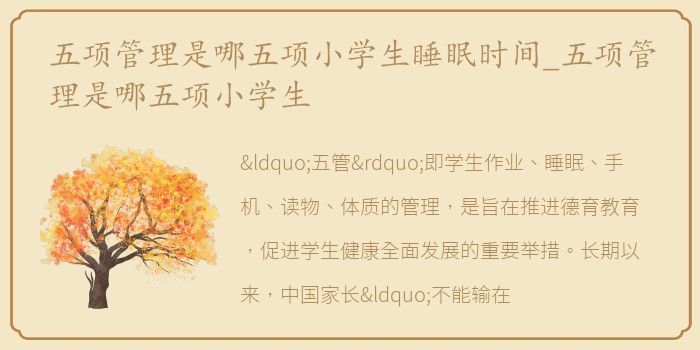 “五管”即学生作业、睡眠、手机、读物、体质的管理,是旨在推进德育教育,促进学生健康全面发展的重要举措。