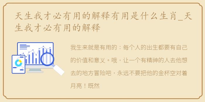 我生来就是有用的:每个人的出生都要有自己的价值和意义。哦,让一个有精神的人去他想去的地方冒险吧,永远不要把他的金杯空对着月亮!既然上天给了人才,就让它被利用吧!至于钱,虽然散了,但还会再聚在一起。产地:唐李白《将进酒君不见》。