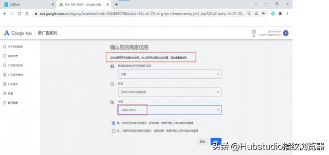 ③设置账户的国家、时区和币种,设置好之后是无法修改的,谨慎操作。