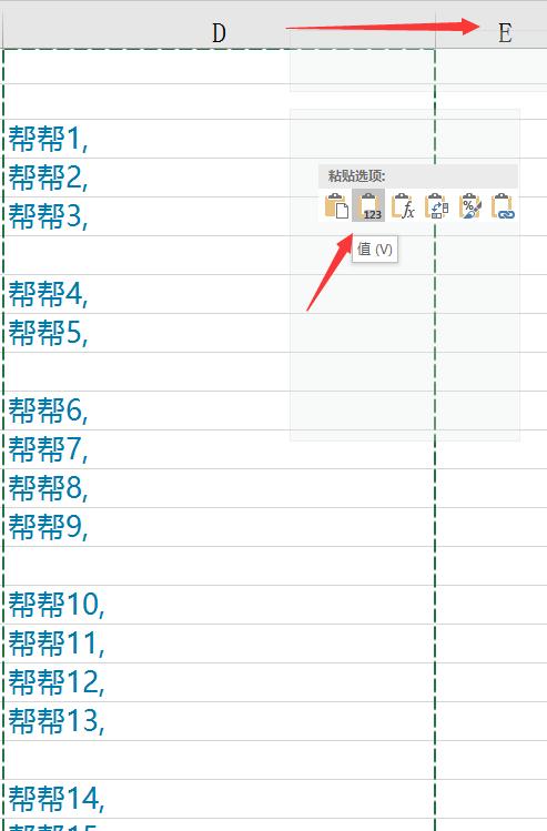 选择刚才=B2&","得含数列,拉宽(宽度一定要超过横向罗列的宽度),复制粘贴为值,破坏公式。