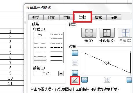 2. 点击设置单元格格式后,点击“边框”→选择“斜线表头”边框→点击确定。