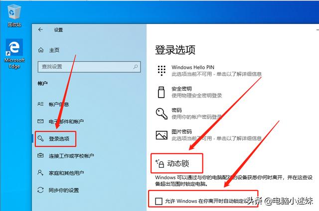 2、在账户里面左侧找到”登陆选项“,可以看到”动态锁“: