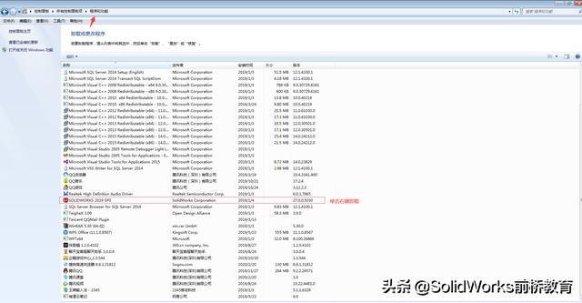 1.打开控制面板-卸载程序,找到SolidWorks,鼠标右击,选择卸载。