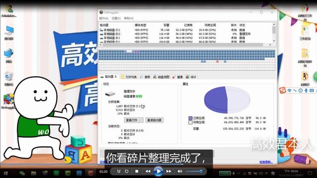 这个时候我们就只用等待碎片整理完成即可,