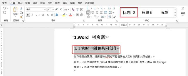 以Microsoft 365版word为例,可在开始菜单的样式功能中,为不同层级标题指定样式,一级标题指定“标题1”。