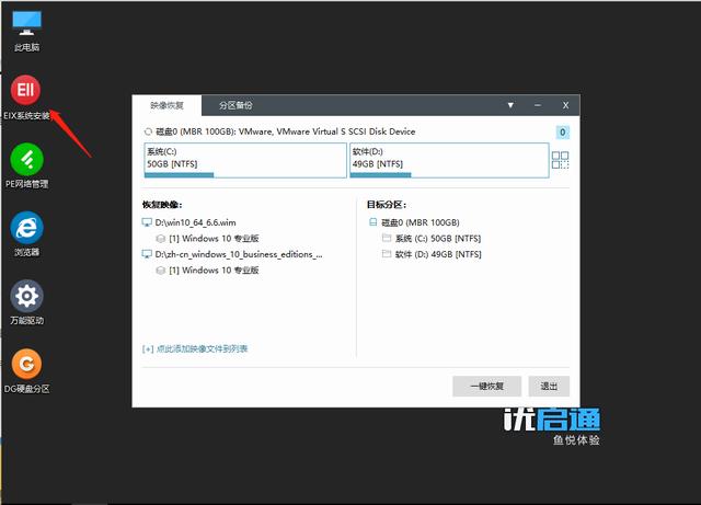 按步骤选中一下 安装系统的C盘和系统文件 这里选择是 win10 最后再点一键恢复