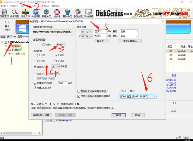 4.设置分区数量 比如你的是500G 一般建议2-3个区就好了