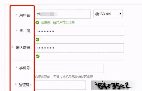 3、选择邮箱后缀3,输入所需的邮箱名称、密码和手机号码。