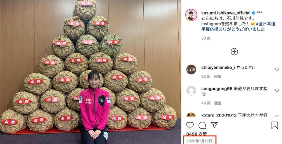 翻看石川佳纯的Instagram账号,可以发现这张图片的发布日期是2020年1月19日。