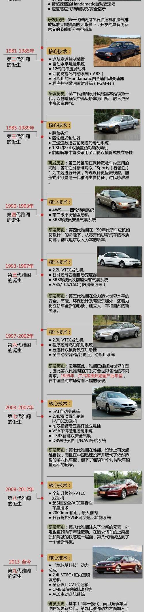 从1976年第一代本田雅阁诞生至今已有37年,如今已经发展到第九代。在文章开始之前,我们先简单回顾一下雅阁这款9代车型的发展历程。