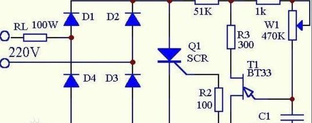 可控硅是一种新型半导体器件,具有体积小、重量轻、效率高、寿命长、动作快、使用方便等优点。目前大部分交流调节器采用可控硅调节器。介绍一种电路简单、安装容易、控制方便的可控硅交流调压器,可作为家用电器的调压器,控制照明灯的调光、电风扇的调速和电熨斗的调温。这款调压器输出功率达到100W,一般家用电器都可以使用。电路原理:电路图如下