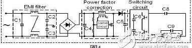 2.2 led节能灯电路(如图3所示)用在C6、C8、C9的位置,其中C6、C9起吸收作用,C8起谐振作用。