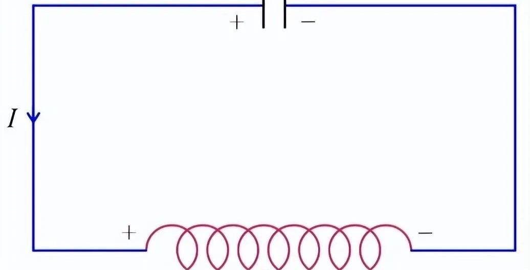 由于电容完全放电,电感完全通电,电感现在开始以相同方向的电流对电容充电。下图描述了LC振荡的原理电路图。