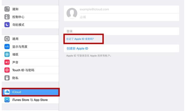 点击设置进入iCloud,点击“忘记Apple ID或密码”;