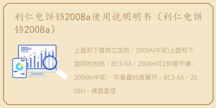 上盘和下盘独立加热:2008A(中奖)上盘和下盘同时加热:BC5-6A,2008H可180度平铺;2008A(中奖),可垂直95度展开:BC5-6A,2008H,烤盘直径:2008a: 30cm(中奖),烤盘直径。它都是27厘米。