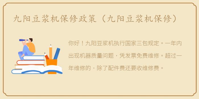 你好!九阳豆浆机执行国家三包规定。一年内出现机器质量问题,凭发票免费维修。