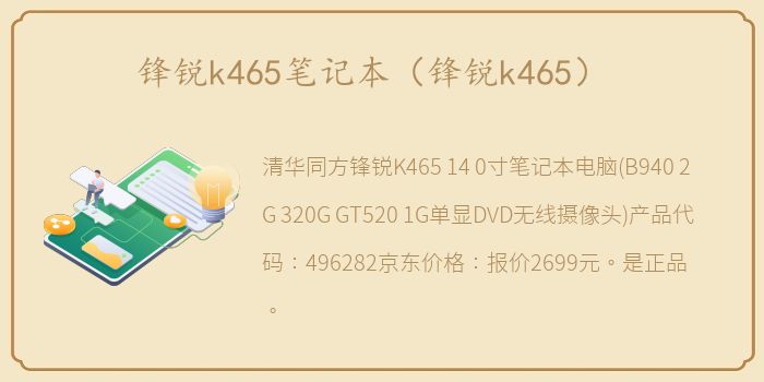 清华同方锋锐K465 14.0寸笔记本电脑(B940 2G 320G GT520 1G单显DVD无线摄像头)产品代码:496282京东价格:报价2699元。