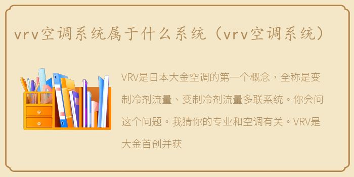 VRV是日本大金空调的第一个概念,全称是变制冷剂流量、变制冷剂流量多联系统。你会问这个问题。我猜你的专业和空调有关。VRV是大金首创并获得专利的,所以其他空调厂商也可以不能用VRV,只能用多对多的概念,也叫一对多。意思是一台室外空调可以拖几台室内机,能拖多少台,取决于每个产品的参数。这个问题一定能解答你的疑惑。为什么会有多重联系(大金是VRV,但都是一个东西,只是专利问题名称不同)?对比一下中央空调、多联、传统分体机的优缺点就知道答案了。
