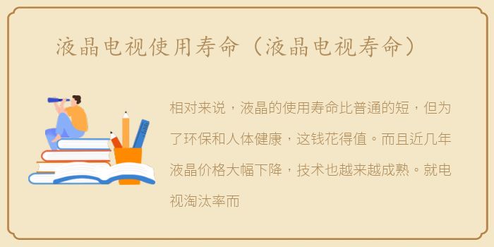 相对来说,液晶的使用寿命比普通的短,但为了环保和人体健康,这钱花得值。而且近几年液晶价格大幅下降,技术也越来越成熟。就电视淘汰率而言,买一台液晶电视不会比看几年普通电视少。就使用寿命而言,以前是个大问题,但现在LCD发展了这么多年,技术也越来越成熟,你就不别担心。一般来说,用10年左右是不成问题的。到时候不一定会出什么样的高科技产品。从质量上来说,目前液晶的技术水平并不比普通的差。可以说已经进入了后LCD时代,也就是说你现在选择LCD有点晚了,下一个就是等离子时代,已经开始了。综上所述,无论是LCD的质量,还是性价比,都是你选择的理由。注意:它选择哪个品牌很重要。我我给你几个技术成熟的品牌,其中最厉害的是三星。可以说,LCD的诞生是三星的信用。全世界用的技术都是三星的,海信是国产液晶最好的。