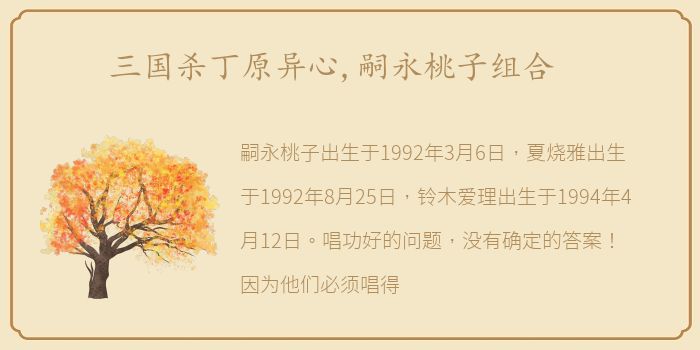 嗣永桃子出生于1992年3月6日,夏烧雅出生于1992年8月25日,铃木爱理出生于1994年4月12日。唱功好的问题,没有确定的答案!因为他们必须唱得好。