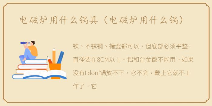 铁、不锈钢、搪瓷都可以,但底部必须平整,直径要在8CM以上。铝和合金都不能用。