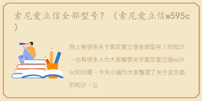 网上有很多关于索尼爱立信全部型号?的知识,也有很多人为大家解答关于索尼爱立信w595c的问题,今天小编为大家整理了关于这方面的知识,让我们一起来看下吧!