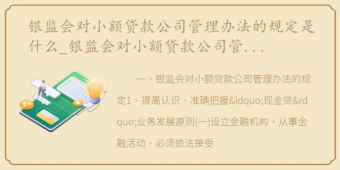以上是125生活网边肖对银监会关于小贷公司管理规定的详细介绍。小额贷款公司在开展业务活动时必须遵守银监会的相关管理规定,还应建立健全促进企业发展的贷款管理制度。如有法律问题,请咨询125生活网专业律师。
