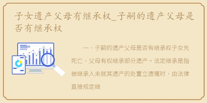 子女先死亡,父母有权继承部分遗产。法定继承是指被继承人未就其遗产的处置立遗嘱时,由法律直接规定继承范围、继承顺序和遗产分配原则的一种继承形式。法定继承是除遗嘱继承以外,依照法律的直接规定将遗产转移给继承人的一种继承方式。
