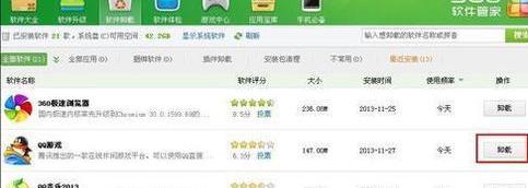 1、使用360软件管理卸载软件的问题。我们以QQ游戏为例。
