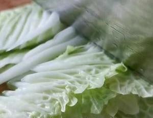 白菜洗净后,将白菜帮和白菜叶分开,菜帮斜刀切片,菜叶也切一下,切好后,菜帮和菜叶分开放。豆腐一块儿切刀切一下,然后切成三角形的后片,差不多1厘米厚就可以了。