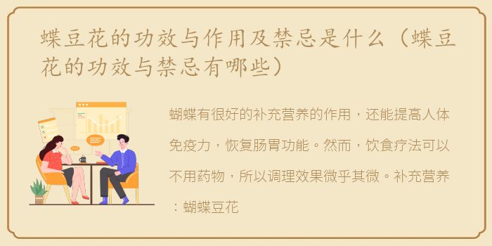 蝴蝶有很好的补充营养的作用,还能提高人体免疫力,恢复肠胃功能。然而,饮食疗法可以不用药物,所以调理效果微乎其微。