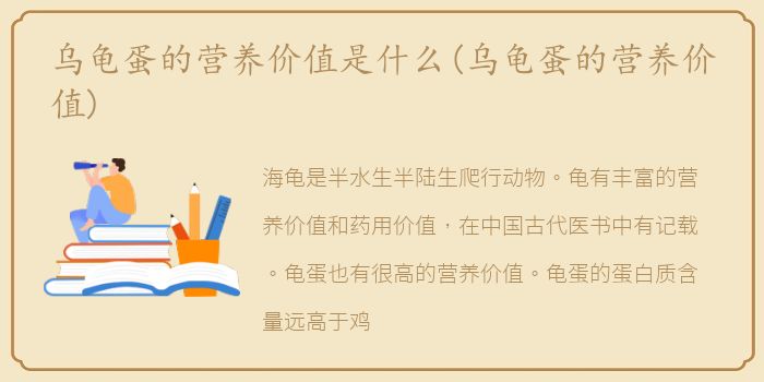 龟蛋也有很高的营养价值。龟蛋的蛋白质含量远高于鸡蛋和鸭蛋。