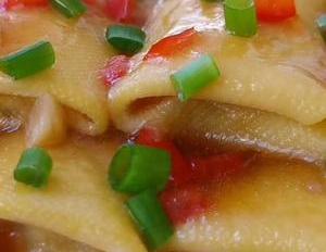 装入一个大一点的盘中,然后放到锅中水开后,用大火蒸15分钟,把它蒸熟,再准备半个红椒,先切成丝,再切成小丁。如果喜欢吃辣一点的,也可以换成小米椒,再准备适量的大蒜,切成蒜末,切好之后放一盘备用。