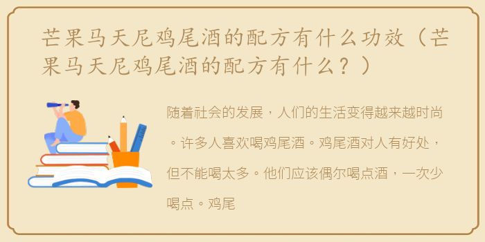 很多人不知道鸡尾酒的配方,很好奇。芒果马提尼鸡尾酒的配方是什么?让我们来看看。