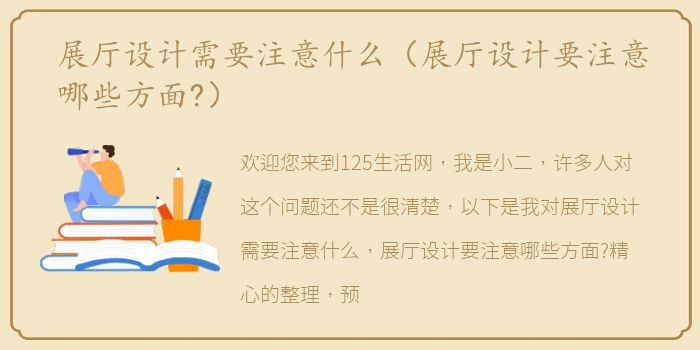欢迎您来到125生活网,我是小二,许多人对这个问题还不是很清楚,以下是我对展厅设计需要注意什么,展厅设计要注意哪些方面?精心的整理,预计阅读30秒。