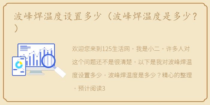 欢迎您来到125生活网,我是小二,许多人对这个问题还不是很清楚,以下是我对波峰焊温度设置多少,波峰焊温度是多少?精心的整理,预计阅读30秒。