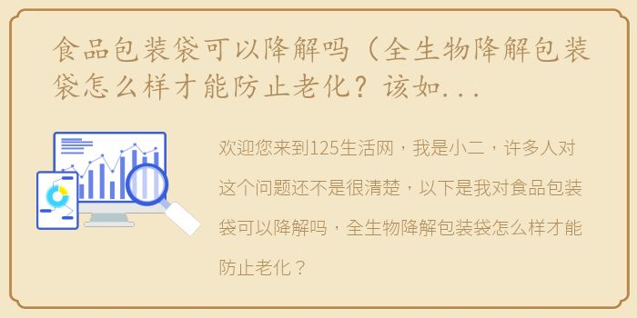 欢迎您来到125生活网,我是小二,许多人对这个问题还不是很清楚,以下是我对食品包装袋可以降解吗,全生物降解包装袋怎么样才能防止老化?该如何避免?精心的整理,预计阅读30秒。