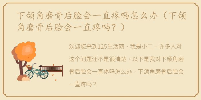 欢迎您来到125生活网,我是小二,许多人对这个问题还不是很清楚,以下是我对下颌角磨骨后脸会一直疼吗怎么办,下颌角磨骨后脸会一直疼吗?精心的整理,预计阅读30秒。