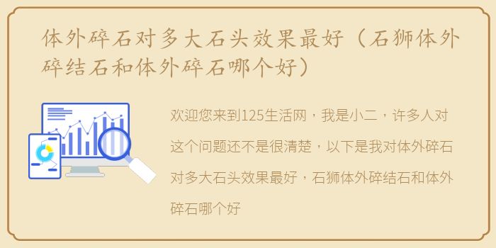 欢迎您来到125生活网,我是小二,许多人对这个问题还不是很清楚,以下是我对体外碎石对多大石头效果最好,石狮体外碎结石和体外碎石哪个好精心的整理,预计阅读30秒。