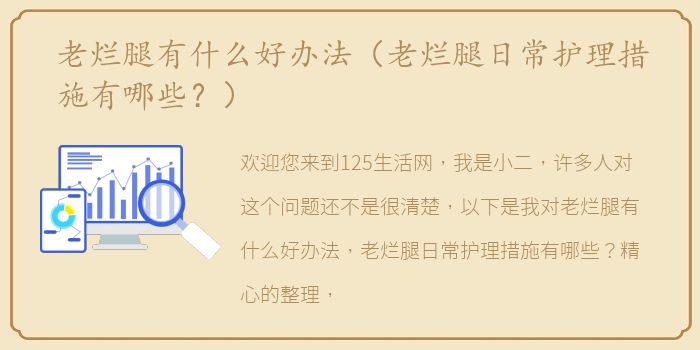 欢迎您来到125生活网,我是小二,许多人对这个问题还不是很清楚,以下是我对老烂腿有什么好办法,老烂腿日常护理措施有哪些?精心的整理,预计阅读30秒。