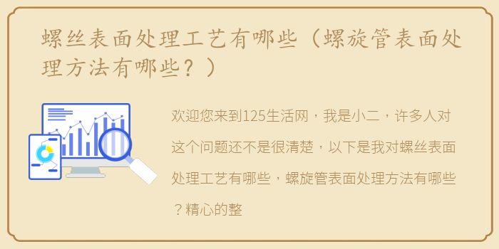 欢迎您来到125生活网,我是小二,许多人对这个问题还不是很清楚,以下是我对螺丝表面处理工艺有哪些,螺旋管表面处理方法有哪些?精心的整理,预计阅读1分钟。