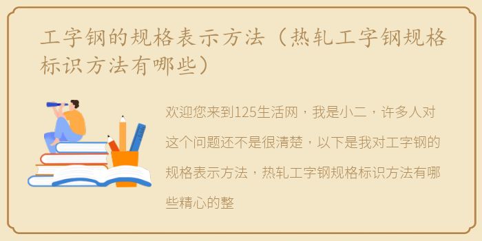 欢迎您来到125生活网,我是小二,许多人对这个问题还不是很清楚,以下是我对工字钢的规格表示方法,热轧工字钢规格标识方法有哪些精心的整理,预计阅读1分钟。