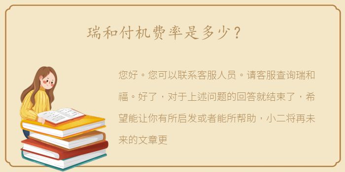 欢迎您来到125生活网,我是小二,许多人对这个问题还不是很清楚,以下是我对瑞和付机费率是多少?精心的整理,预计阅读30秒。