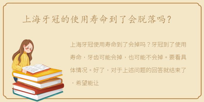 欢迎您来到125生活网,我是小二,许多人对这个问题还不是很清楚,以下是我对上海牙冠的使用寿命到了会脱落吗?精心的整理,预计阅读30秒。