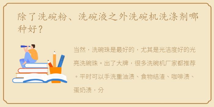 欢迎您来到125生活网,我是小二,许多人对这个问题还不是很清楚,以下是我对除了洗碗粉、洗碗液之外洗碗机洗涤剂哪种好?精心的整理,预计阅读30秒。